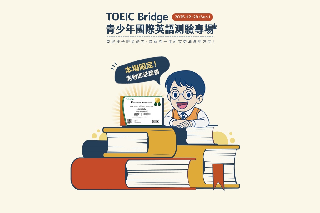 孩子每天用Netflix追美劇、打遊戲、看YouTuber分享最新話題,是在玩還是在學英文?看了那麼多,英文真的吸收進去了嗎?想必這都是大多數家長內心的疑問,也是兩個小孩的家長何桂禎想了解的問題。今年初她幫就讀大安高工機械科的兒子盧能白報名中學生溝通英語力競賽,評量英語聽、讀、說三項能力,一舉拿下TOEIC Bridge聽力與閱讀測驗滿分的好成績,以及口說闖關最高等級,展現絕佳的英文實力。