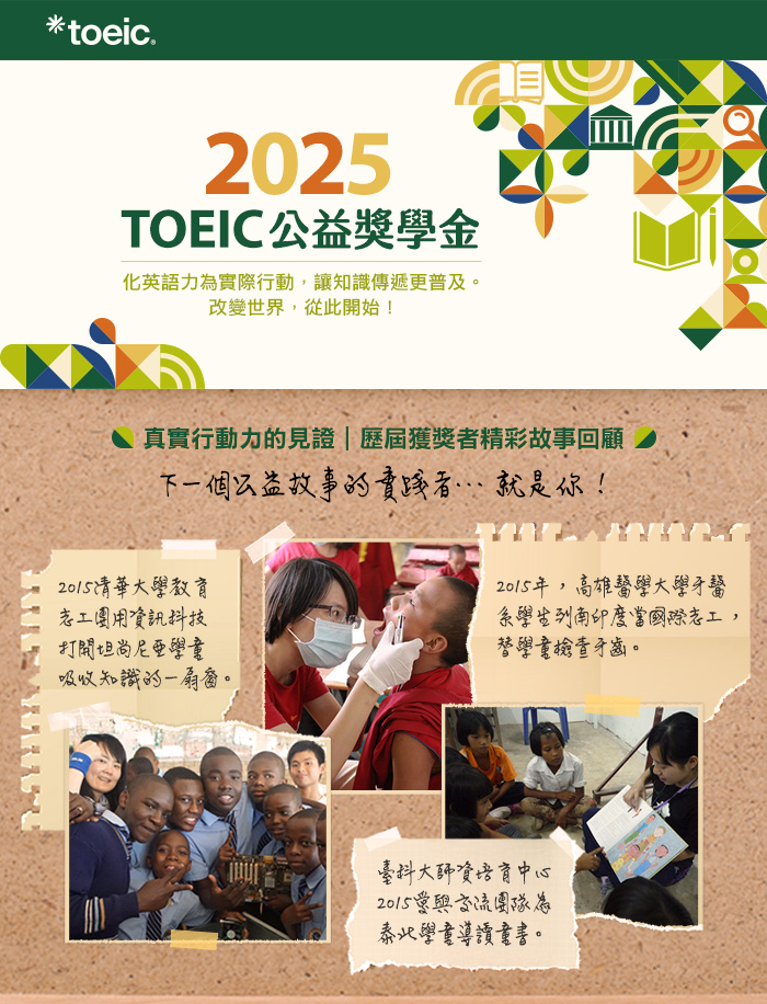 TOEIC is a registered trademark of ETS in the United States and other countries, used under license in Taiwan. The Eight-Point logo is a trademark of ETS.